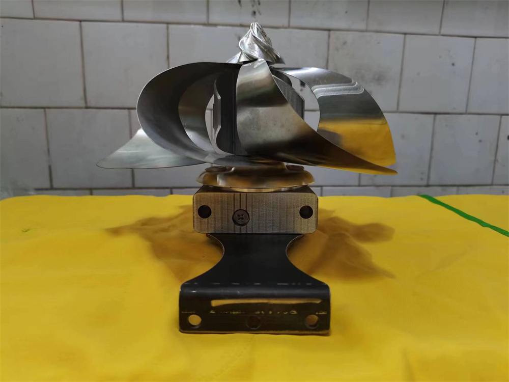 4、花轴头上 8m 丝头是用来带分风螺母,他的作用是用来把团风分成多股,每股风作用于风叶,这样就推动了整个轴的转动,花轴是用来组装心部叶片和外部叶片,风叶的组成部份,是多层风叶、当外部叶片受力满的时候,就进入心部叶片,心部叶片形成涨力再次推动主轴,转动整个受风头,多次分团风,是就变成多层、多风点,多平面受风,多角度风眼,这样就形成了,整个强大的力量叶片,推动着发电机发电供给移动目标。